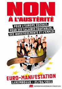 Els propers 22 i 23 de juny està previst que el ple del Parlament Europeu discuteixi el Pla de Governança i el Pacte per l’euro. Per això la Confederació Europea de Sindicats (CES) convoca una jornada d’acció europea el 21 de juny, per expressar el rebuig a les polítiques d’ajust pressupostari que contempla el model de Governança econòmica que volen imposar i que afectarà negativament a milions de ciutadanes i ciutadans. Aquesta mobilització, que a Barcelona també es farà el proper 21, té com objectiu exigir una Europa més social i solidaria, amb treballs estables i de qualitat, amb salaris dignes, on es promocioni la formació per a tothom, i on hi hagi una cobertura social forta que garanteixi l’accés a uns serveis socials de qualitat. Avui les mesures que impulsa la Unió Europea només garanteixen els interessos dels mercats financers i bancaris deixant de banda les necessitats dels ciutadans i ciutadanes.